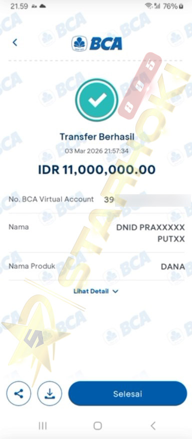 BUKTI TRANSFER JP MEMBER STARHOKI805